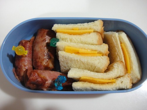 放學去接jason時,他說今天好多人圍過來看他吃甚麼,還跟他要來吃呢!第2天做了培根包熱狗,加上土司夾起士,圍觀的人更多了,連老師都來看看怎麼回事