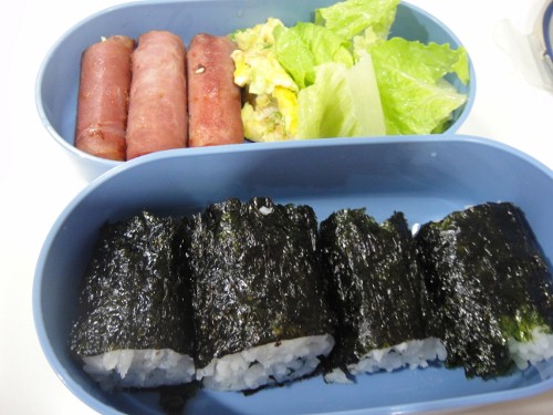 我為了讓jason打開早餐盒時會很新奇,所以從不告訴他我做了甚麼,前一晚睡前先煮了飯,準備第2天包海苔,jason看到我要睡了還煮飯,就問我說你是不是等一下想吃甚麼好料的,不然為甚麼在煮飯?